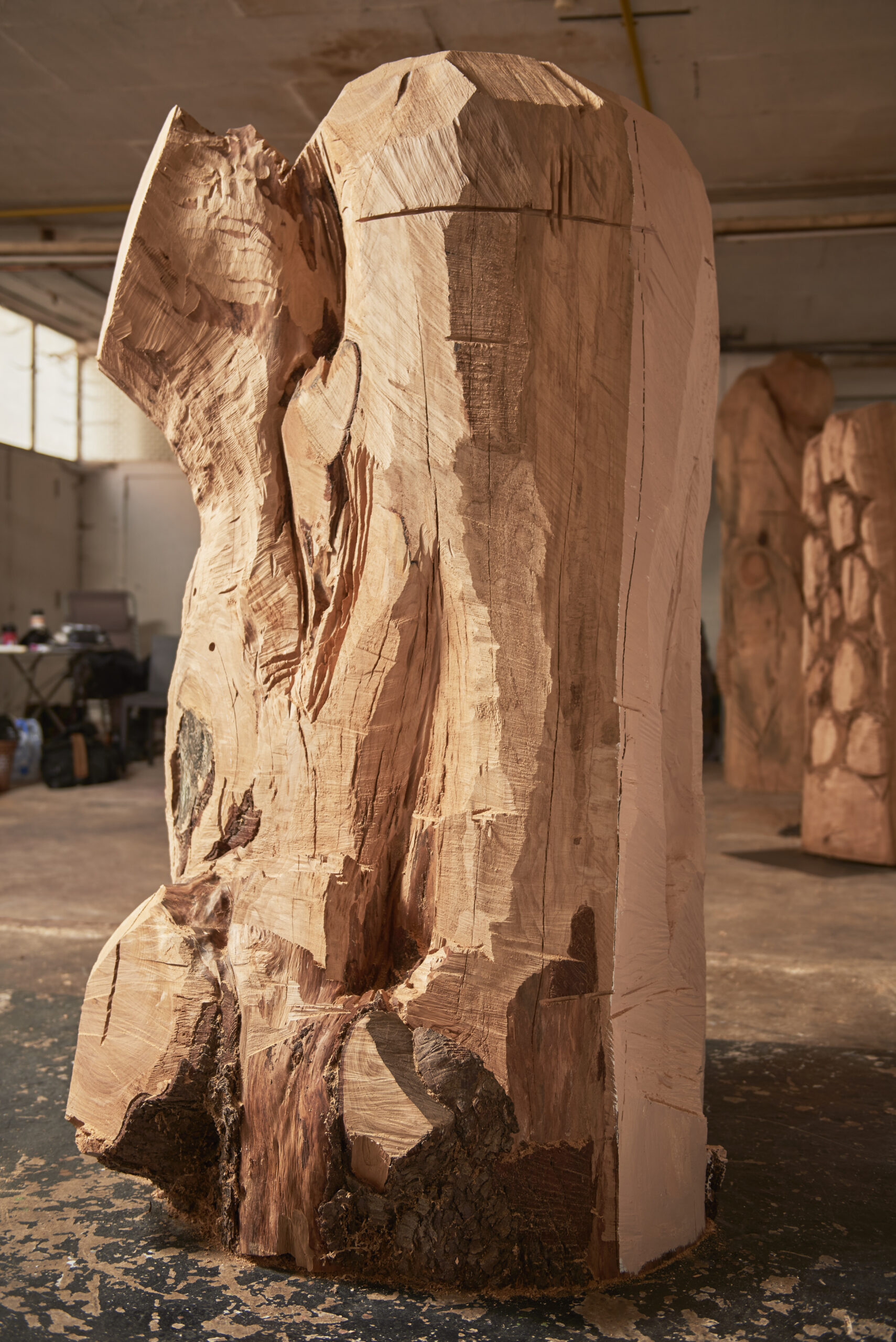 Hyvrier 'Perhaps we all know deep down that we are immortal', cedar, paint, ht:210 cm, width:165 cm, 2018