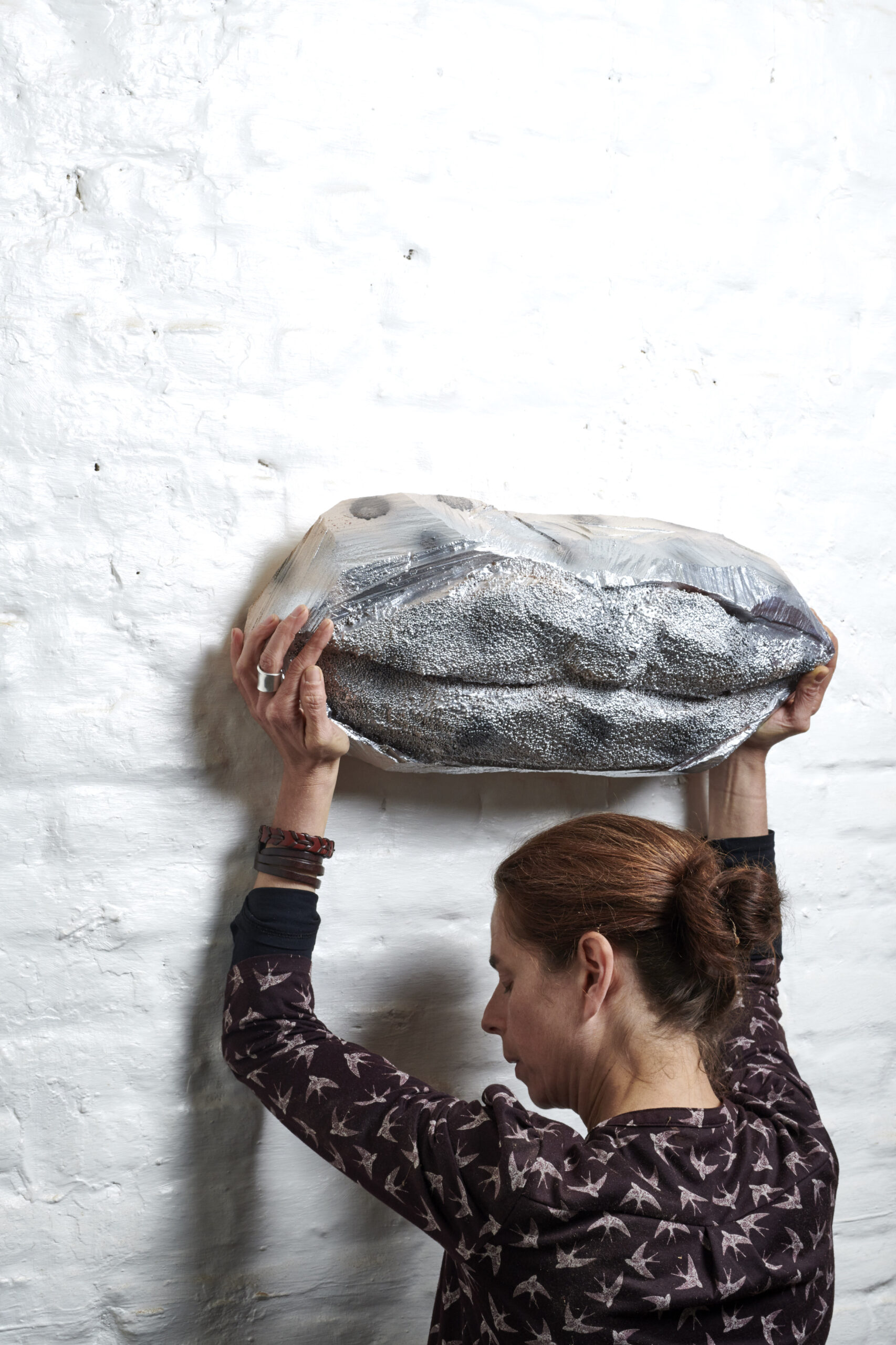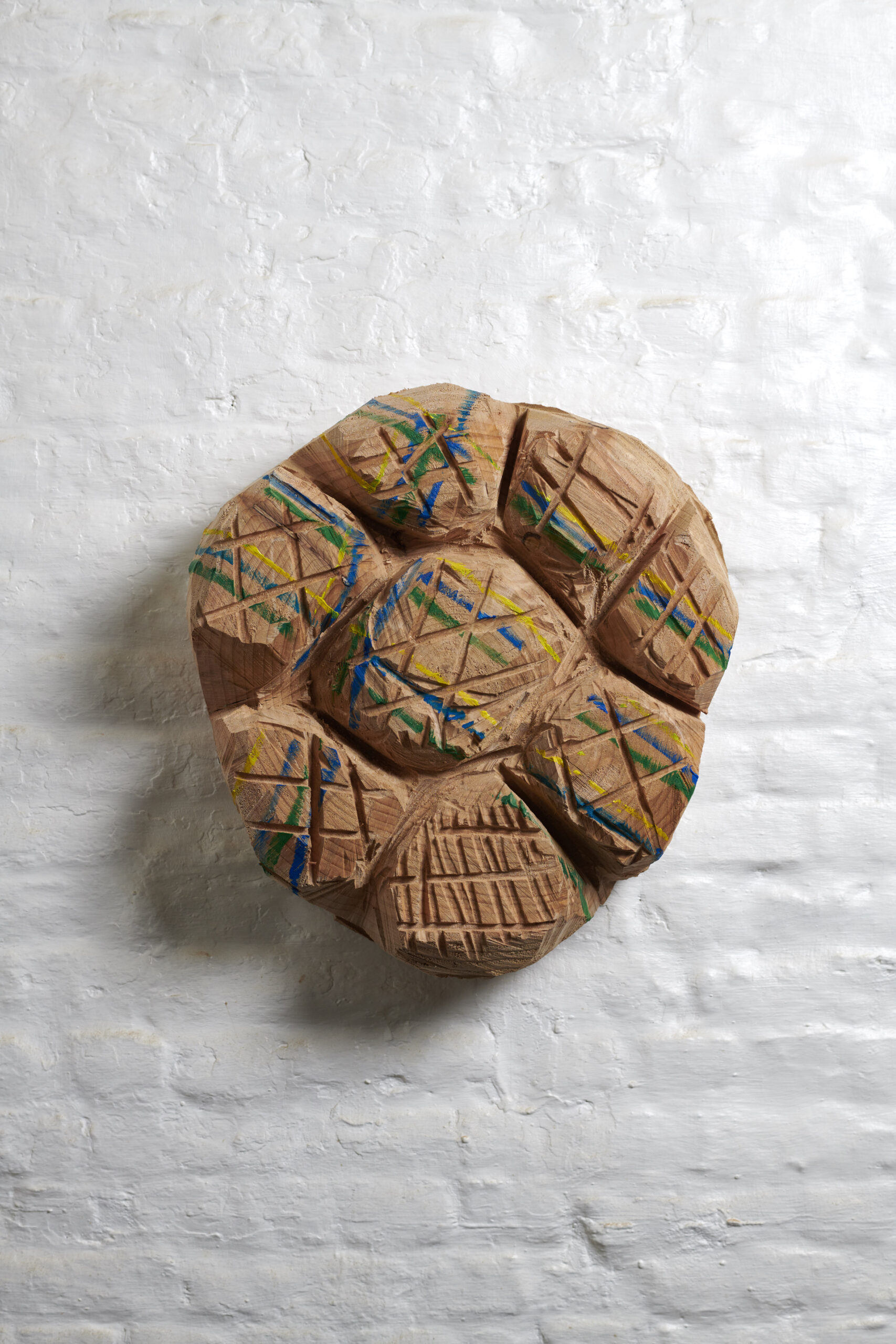 Sans titre, 2019, cèdre, peinture, diamètre: 45 cm, épaisseur: 13 cm, Annabelle Hyvrier sculpture